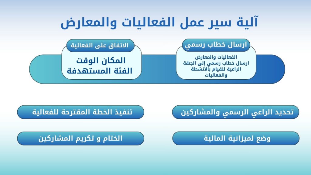 1- ارسال خطاب رسمي الى الجهة الراغبة للقيام بالانشطة والفعاليات